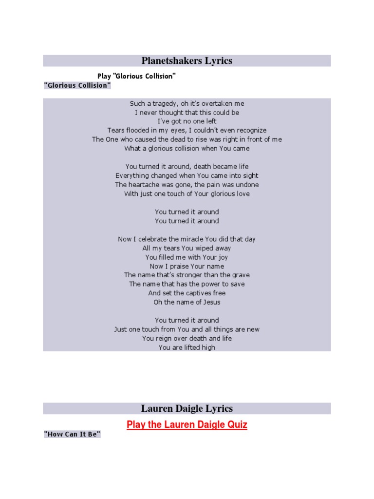 Planetshakers Lyrics Pdf Heaven Mercy